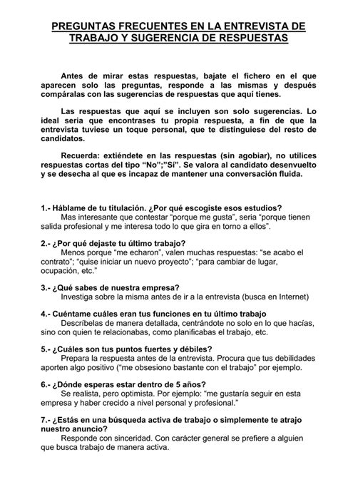 Prepararse para una entrevista de trabajo es clave para tener éxito en el proceso de selección. Practicar posibles preguntas y respuestas te ayudará a sentirte más seguro y preparado para la entrevista. Recuerda ser honesto, específico y mostrar una actitud positiva durante la entrevista. ¡Buena suerte!